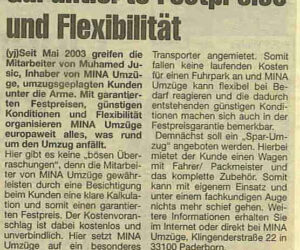 MINA-Umzüge als fester Bestandteil der Umzugsbranche in OWL 2010