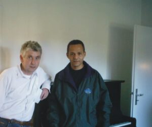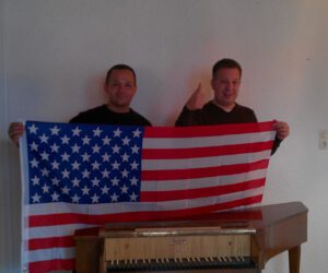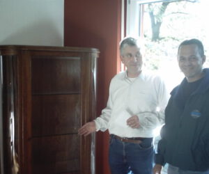 Paderborner Umzugsprominenz; ehemaliger Domorganist am Hohen Dom zu Paderborn und international bekannter Konzertorganist Prof. Gereon Krahforst (re.) kurz vor seinem Überseeumzug in die USA. MINA-Umzüge Geschäftsführung Dipl.-Kfm. Marcus Adefope (li.).